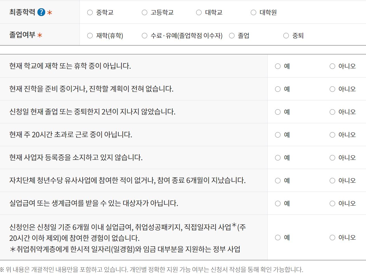 지원 자격 : 차등 지급입니다.